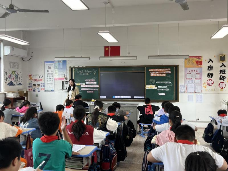 史老师整节课活动设计形式多样,环节与环节之间衔接自然,语言丰富,情绪饱满,学生积极参与,整节课的课堂氛围非常活跃。上课后,史老师通过玩一个guessing game活跃了课堂气氛,也自然地导入本课的话题。然后分享了老师的国庆假期,并教授了square, palace, museum等新单词,在教授单词的时候也穿插了音标教学。接下来,史老师引导学生积极分享了他们的国庆假期,同时引出story time,让学生看图片并且猜测:What are they talking about?接下来,史老师让学生通过阅读、听课文、看视频、看图片等多种方式更深入地了解课文内容并完成选择、填空、回答问题等练习。在熟悉课文内容后,史老师引导学生跟读课文,并提供了三种读书形式(齐读、分角色朗读、一个跟着一个读)让学生自行选择进行朗读。紧接着,史老师又带领学生一起尝试复述课文内容,对新课文的复述对学生还是有一些难度的,所以史老师提供了一些线索,让学生以填空的形式完成复述练习。最后,为了让学生能真正将今天所学的新知识运用于实际,并邀请学生进行展示。