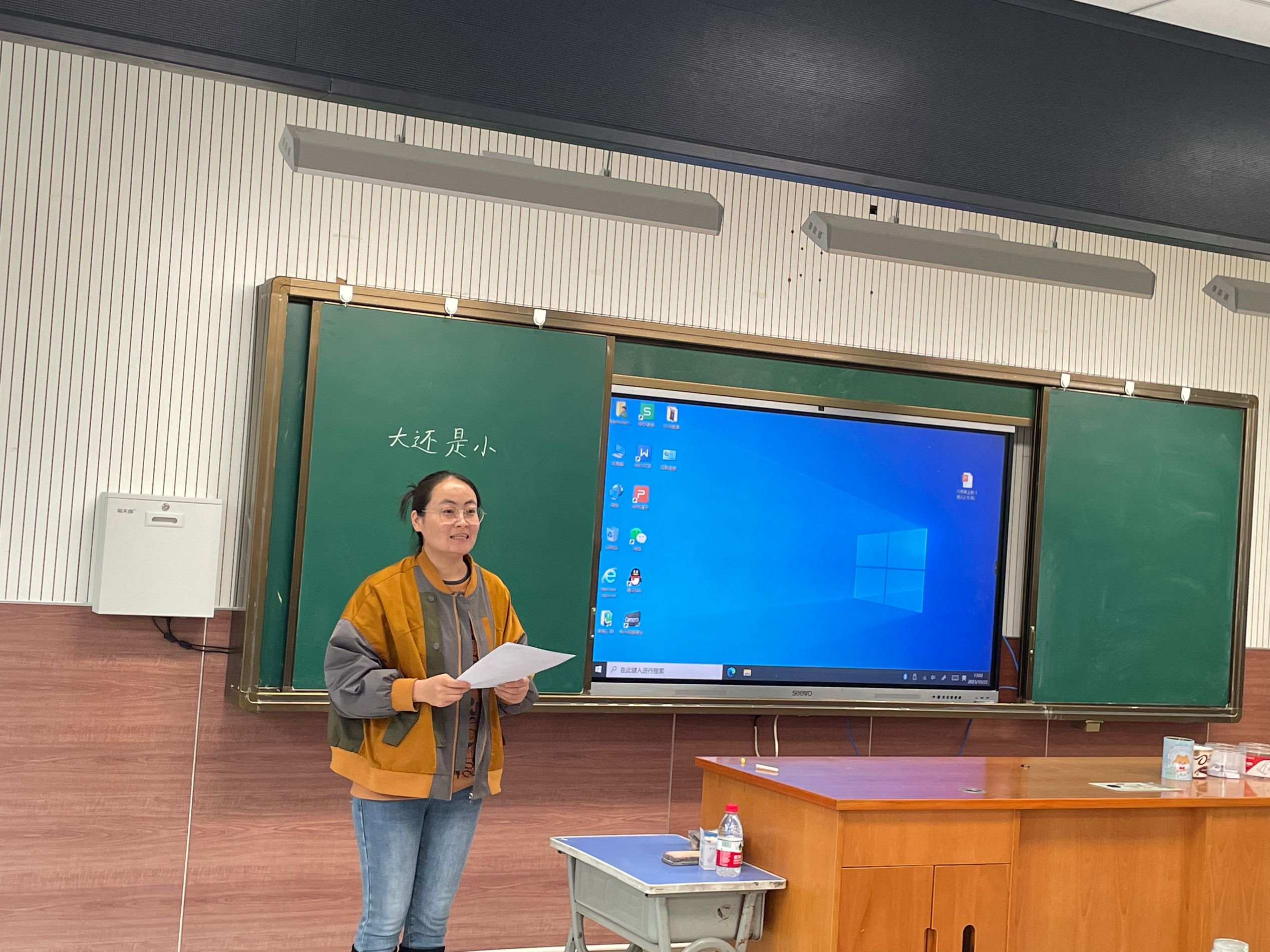 贾玲利老师无生试讲的课题是《大还是小》。贾老师的试讲从词语复习入手,再导入新课的学习,带领学生理解文中的小朋友什么时候觉得自己小、为什么希望自己长不大等问题,在写字指导方面,已“得”“很”两个字入手,重点学习了“忄”“彳”两个偏旁。最后带领学生合作朗读,结束了本节课的试讲。