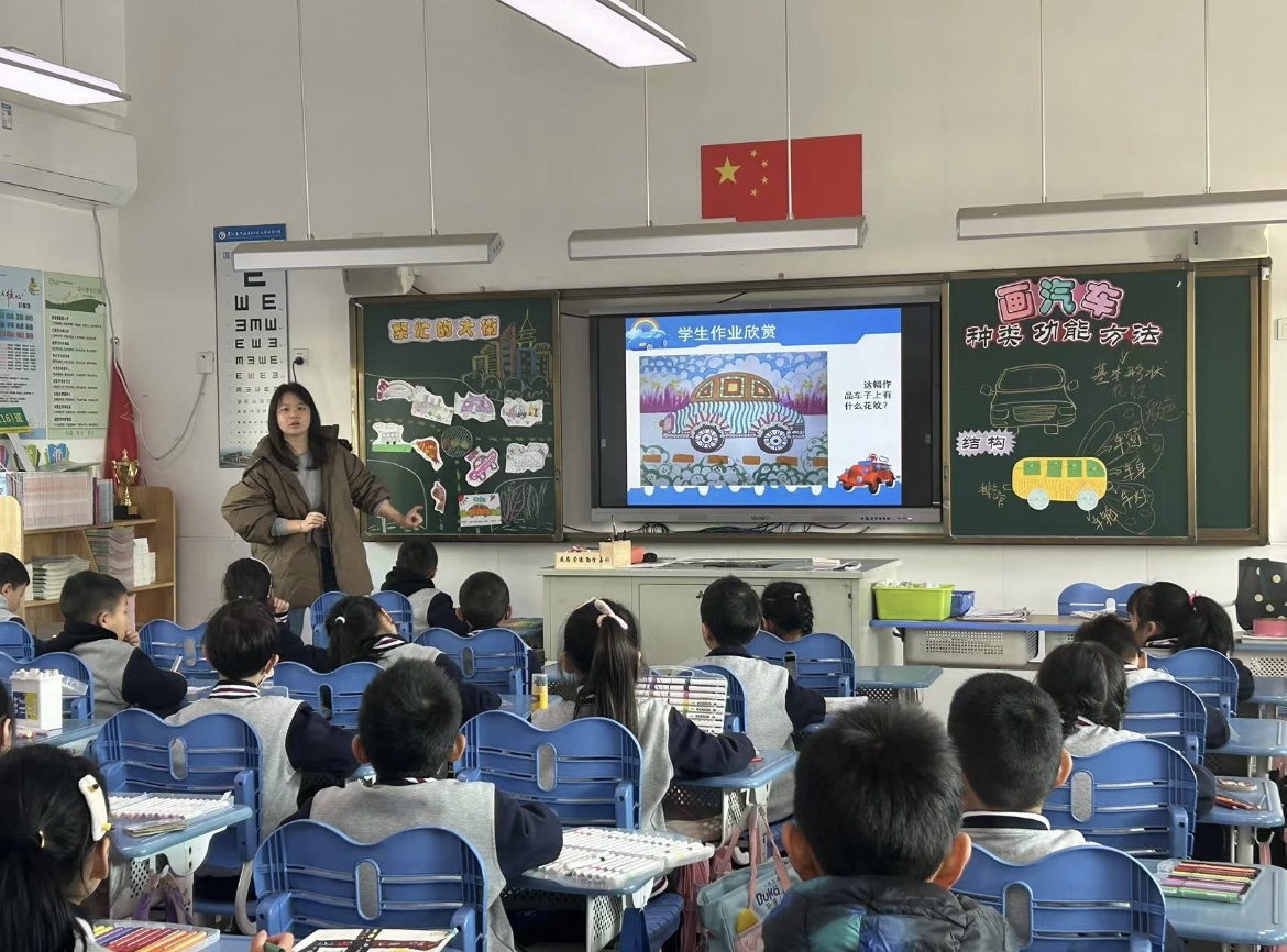 11月14日,上午第一节课,在明泉校区一16班的教室,听了马琴老师执教的《画汽车》一课。本课属于“造型·表现”领域课程。这节课是学生通过对汽车的回忆、观察,大胆地把自己所见所闻、所思所想的事物表现出来,从而培养学生造型表现能力和创造能力,使学生体验到成功的喜悦。