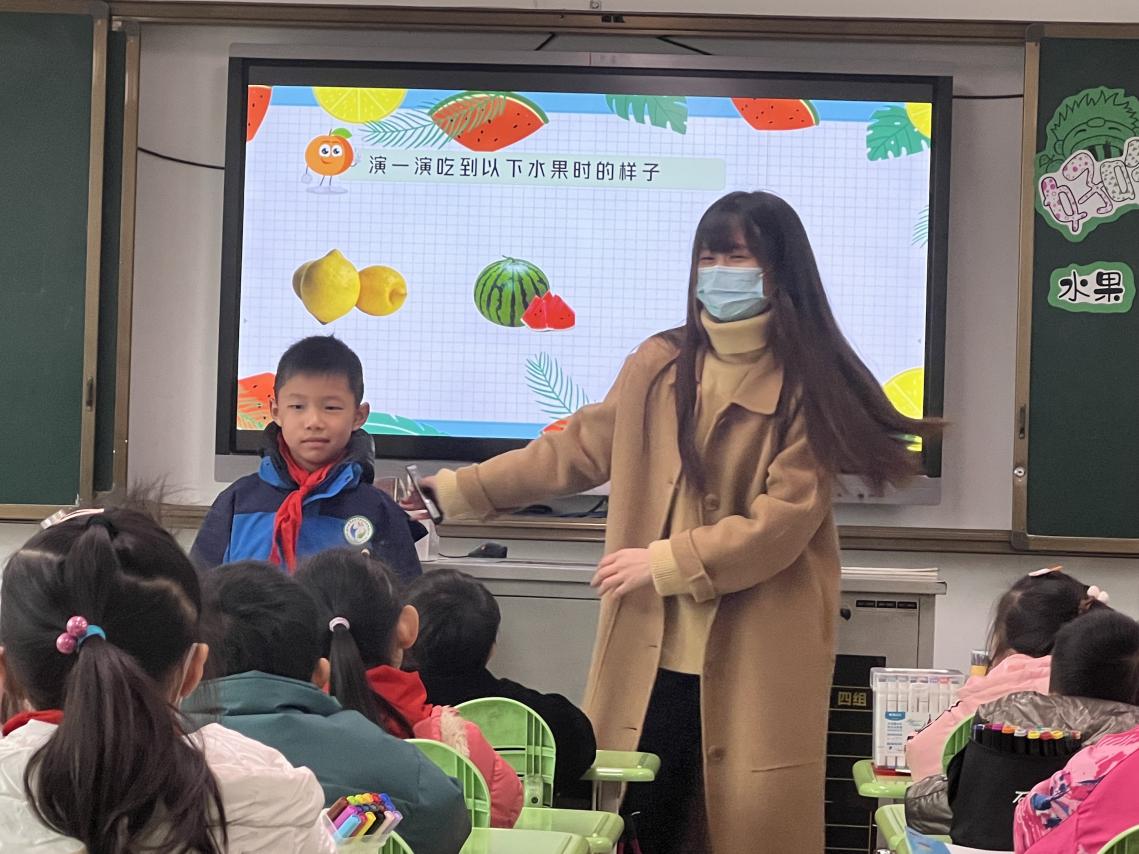 12月12日,上午第一节课,在明泉校区二12班的教室,听了陈笑笑老师执教的《好吃的水果》一课。本课属于“造型·表现”领域课程。