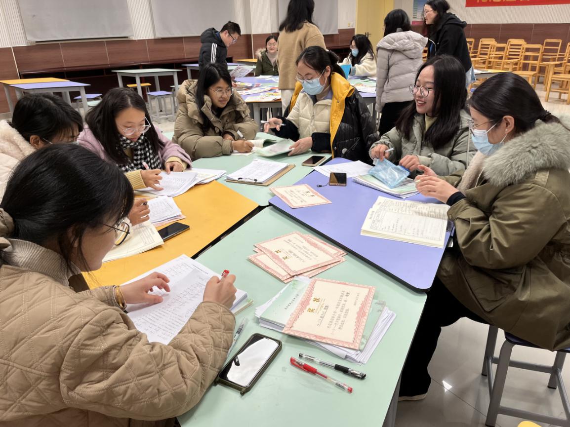 接下来组内进行作业互查,各位老师详细审阅了学生的作业,互相给出了自己的意见,总结下来如下:1.作业等第的字可以适当大点。2.尽量一题一“√”。3.可以适当加一些个性化的评语。