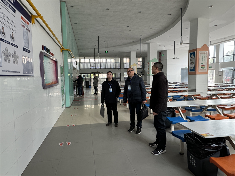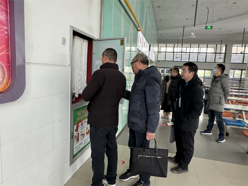 督学来到食堂,进行了全面的卫生状况及消防设备检查,以确保安全卫生。同时,督导对消防设备进行了检查,包括灭火器和消防栓的状态以及消防通道的畅通情况。