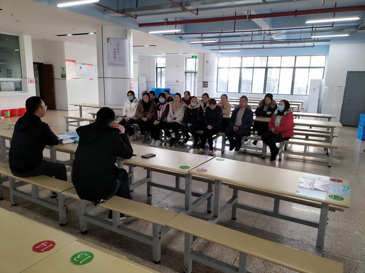 12月6日,后勤服务中心在迎春校区、明泉校区食堂开展了工作会议。首先,食品安全管理员董良讲了三点: