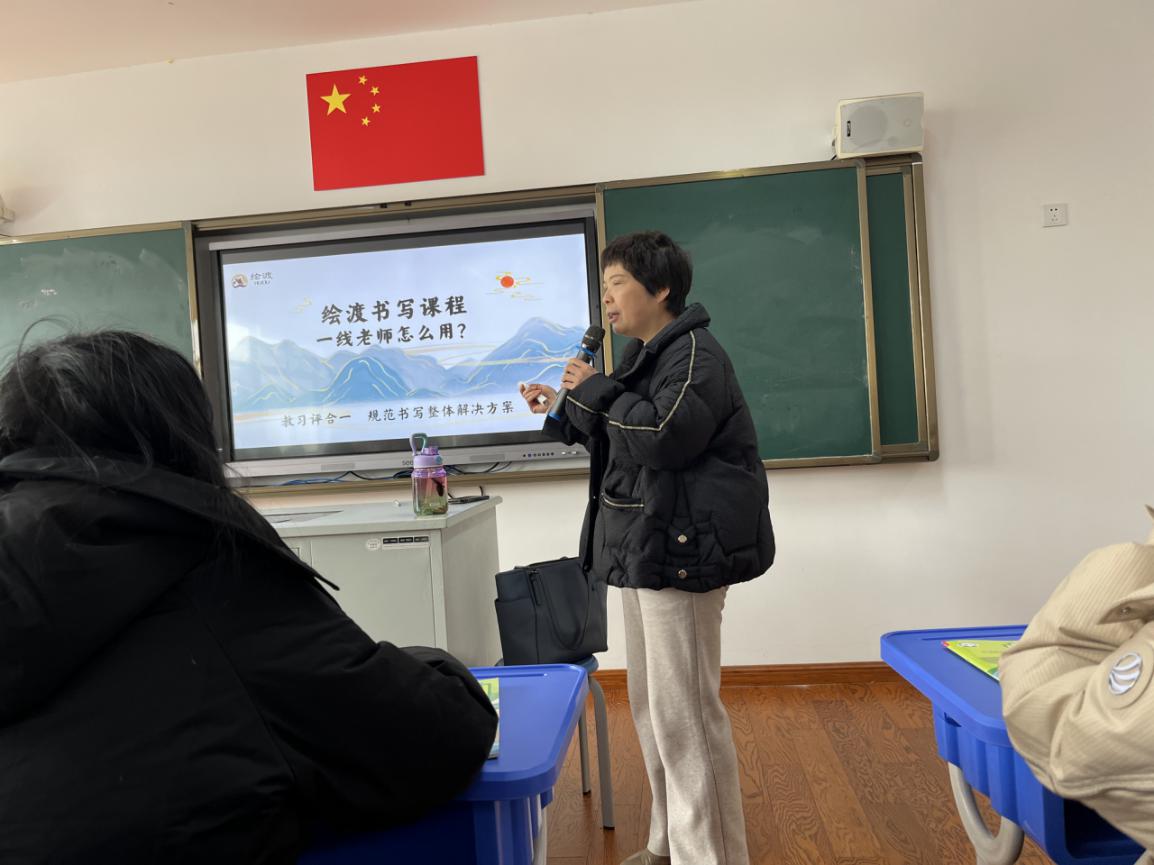 培训中谭海珍校长就绘渡书写课程的优点进行了说明,绘渡书写课程围绕着“教-习-评”的要求进行设计,整个写字过程既不枯燥,又能拓展知识面,书写系统中每个生字都有视频指导以及笔顺的学习,整个书写测评系统提供了更多科学的综合分析,为老师的指导提供了更为精准的参与。同时,谈校长也针对花港迎春小学实际情况,建议我校可以单独开设一节书写课,专门指导低年级段学生的写字,对于谈校的建议,我校老师大力支持,大家一直认为一、二年级很有必要进行书写教学。