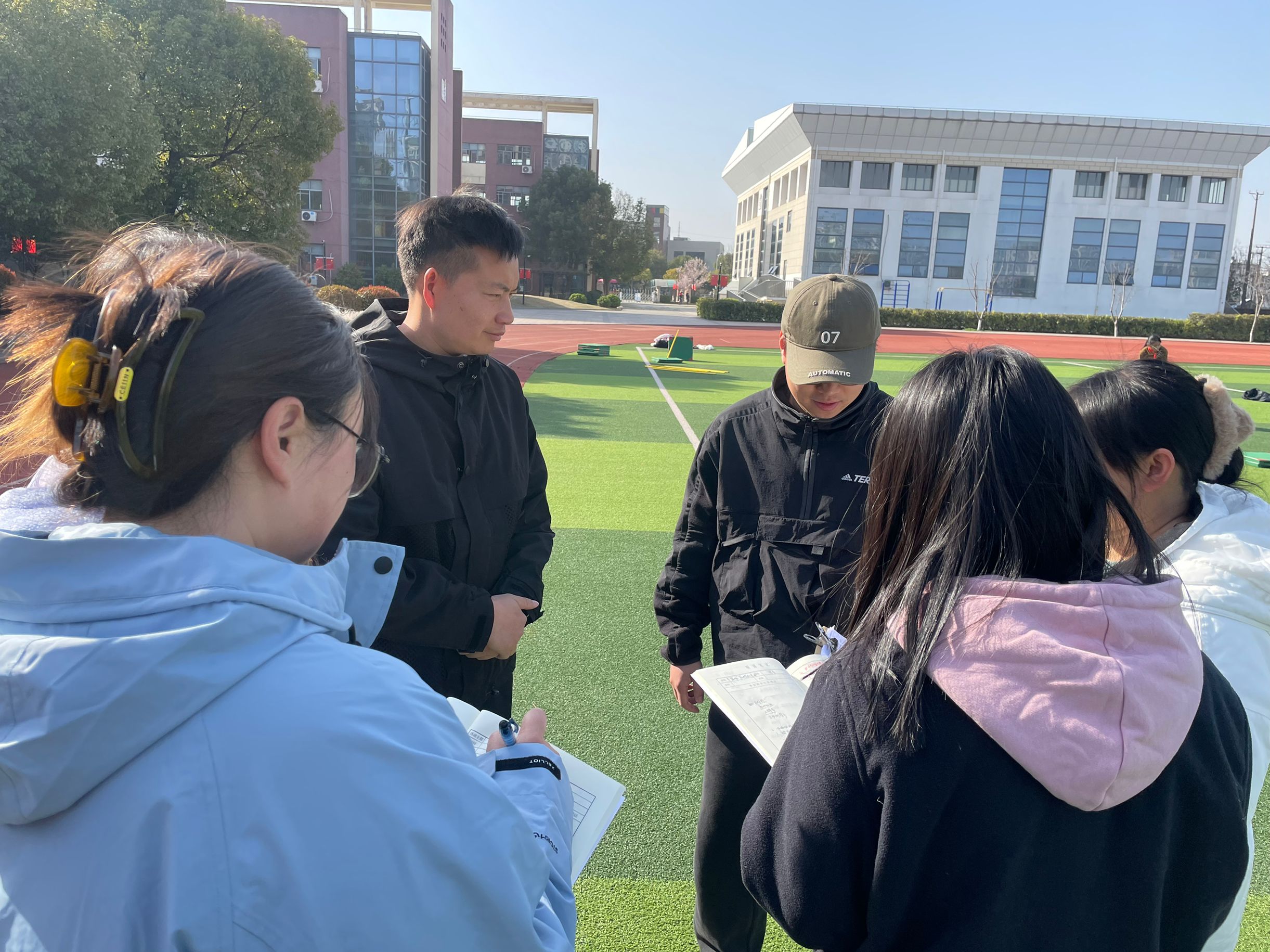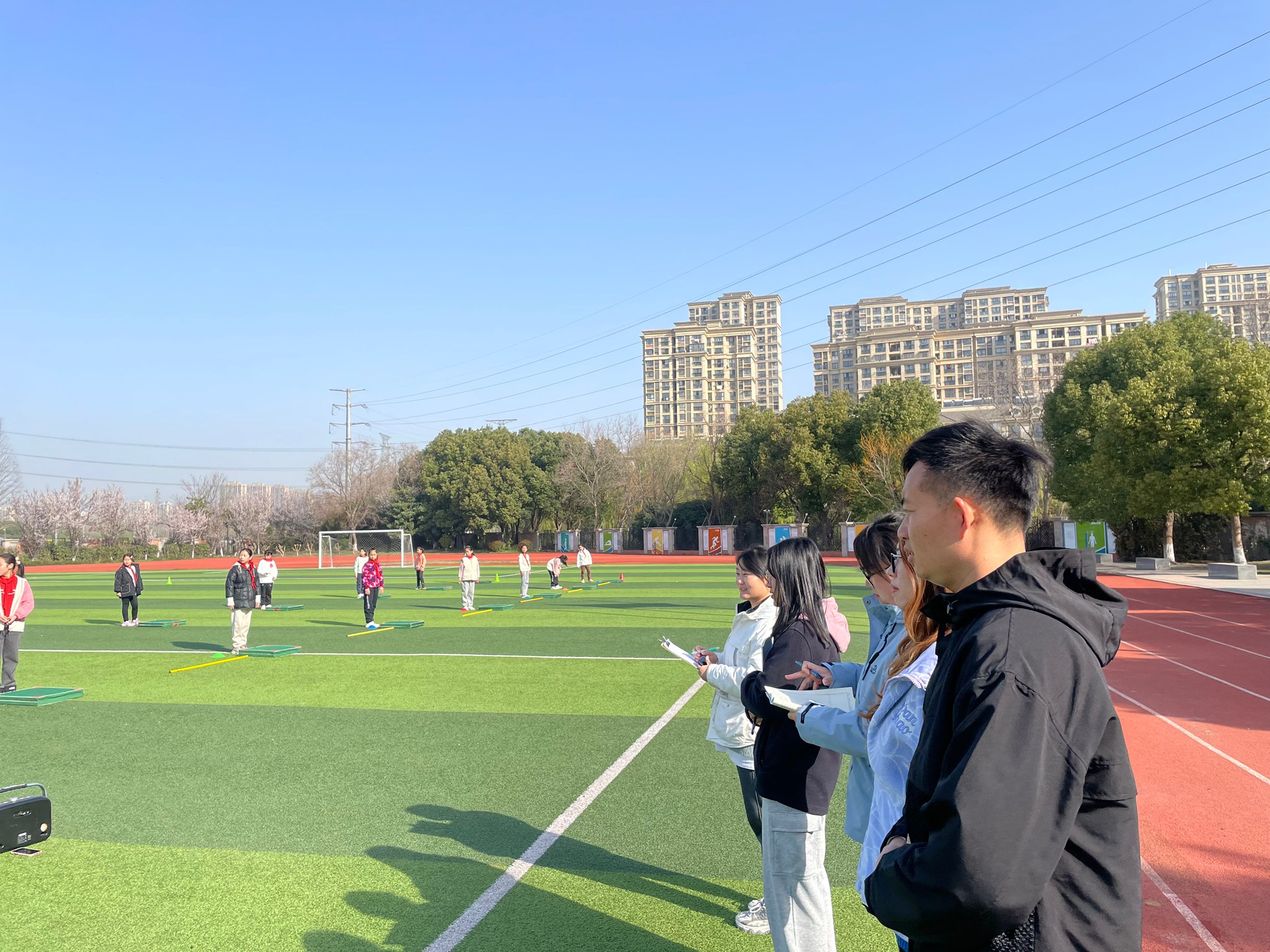 5月9日,上午第一节课全体体育组成员在操场听了庞思琦老师的《合作跑与游戏》教研课。