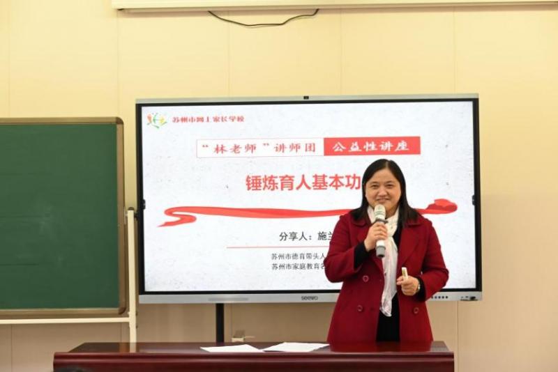 最后,施兰红老师带来主题讲座《锤炼育人基本功》,紧扣班主任基本功和基本素养,以情感为纽带,以案例为支撑,以文件为纲要,娓娓道来,让人获益匪浅。