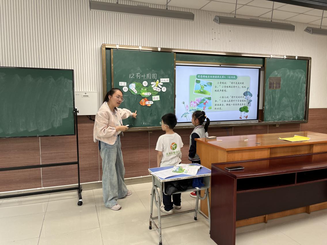 唐老师老师的课堂设计严谨细致,几个环节清晰,朗读形式多样,随文识字贯穿课堂始终,师生配合非常默契,整个过程比较流畅,重难点突出,充分调动了学生的积极性,使学生在课堂当中提升了自我,取得了进步。杨校长最后提出教师在上课过程中语速要慢,站姿不要固定,过渡语要柔和,语言配合动作,更符有儿童话。陆老师的课堂利用情境教学十分精彩,她首先运用闯关游戏,争做荷塘小诗人,激发孩子们的学习兴趣。整堂课中利用图片、视频等方法,让学生在词语和句子等具体语境中更好地掌握了生字,同时也引导学生在多种形式的朗读中体会到课文体会到夏日美好,激发对大自然、对美的向往,从而树立保护大自然的意识。