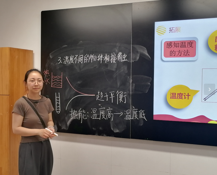 2024年05月15日星期三上午,科学组全体教师在花港迎春小学迎春校区科学教室1开展教研活动:观摩何雪老师《温度不 同的物体相接触》的教研课。五年级14班的学生在何老师的课堂上探究温度不同的物体相互接触后发生的变化。
