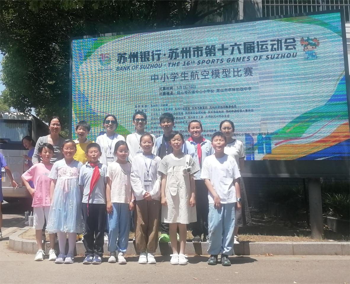 近日我校航模社团12名小社员参加了在苏州千灯古镇举行的苏州市第十六届运动会中小学生航空模型赛。