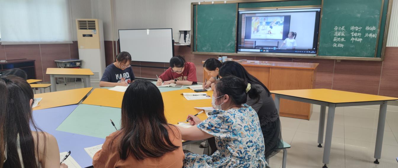 一、9月18日,一—五年级组的英语老师齐聚二楼多媒体,对译新三上教材进行研读。