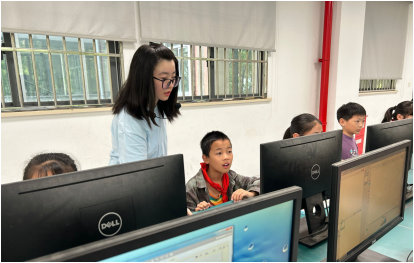 首先,施老师出示青蛙要过河情境,引导学生使用scratch来制作青蛙过河的动画,出示课题。之后设问,要制作一个动画,我们首先要确定背景,施老师引导学生从外部直接导入池塘的图片,再导入角色。之后对角色所需要完成的动作进行分析。本节课的难点是坐标系,学生利用坐标系确定角色的位置,利用归纳——总结的思维可现的方式来帮助学生搭建脚本,给学生一个清晰的编程思路,保证完成率。在完成动画之后,施老师引导学生进行动画的改编,提高学生的创新意识,最后回归生活,生活中的坐标系有哪些?让学生用坐标解决生活中的问题,在授课时每一个环节学生积极操作,教师认真指导,整个流程完整流畅,学生达成率较高,都编写出精彩的青蛙过河的动画。
