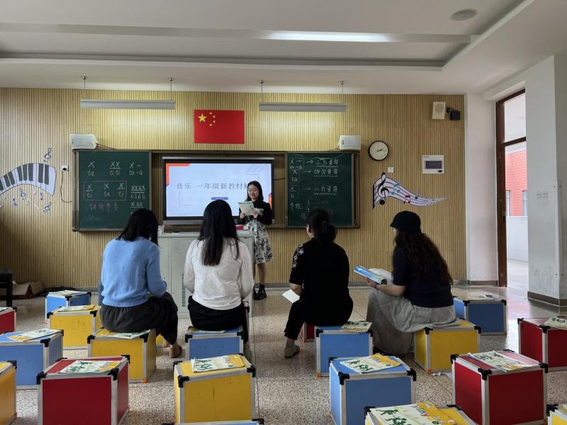 其次,陈安雪老师进行了一年级音乐新教材解读。让老师们熟悉教材的同时更好地挖掘教材的深度,让学生的实践活动更有趣,更多元化。同时为年轻老师们在日常教学中指引方向,梳理教学思路。