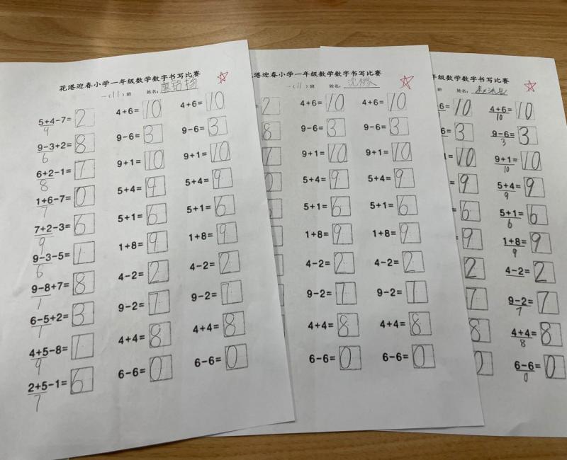 你看!一张张佳作跃然纸上,每一份都凝聚着孩子们的细心和认真,透露着孩子们扎实的书写功底!正确、规范、工整的数字成为了一道道靓丽的风景线,一沓沓纸张携带着笔墨的悠然清芳,每一位小朋友都展示出了自己最好的水平,让我们为他们漂亮规范的书写点赞!许多优秀作品脱颖而出,接下来,让我们一起欣赏一下孩子们的作品吧!