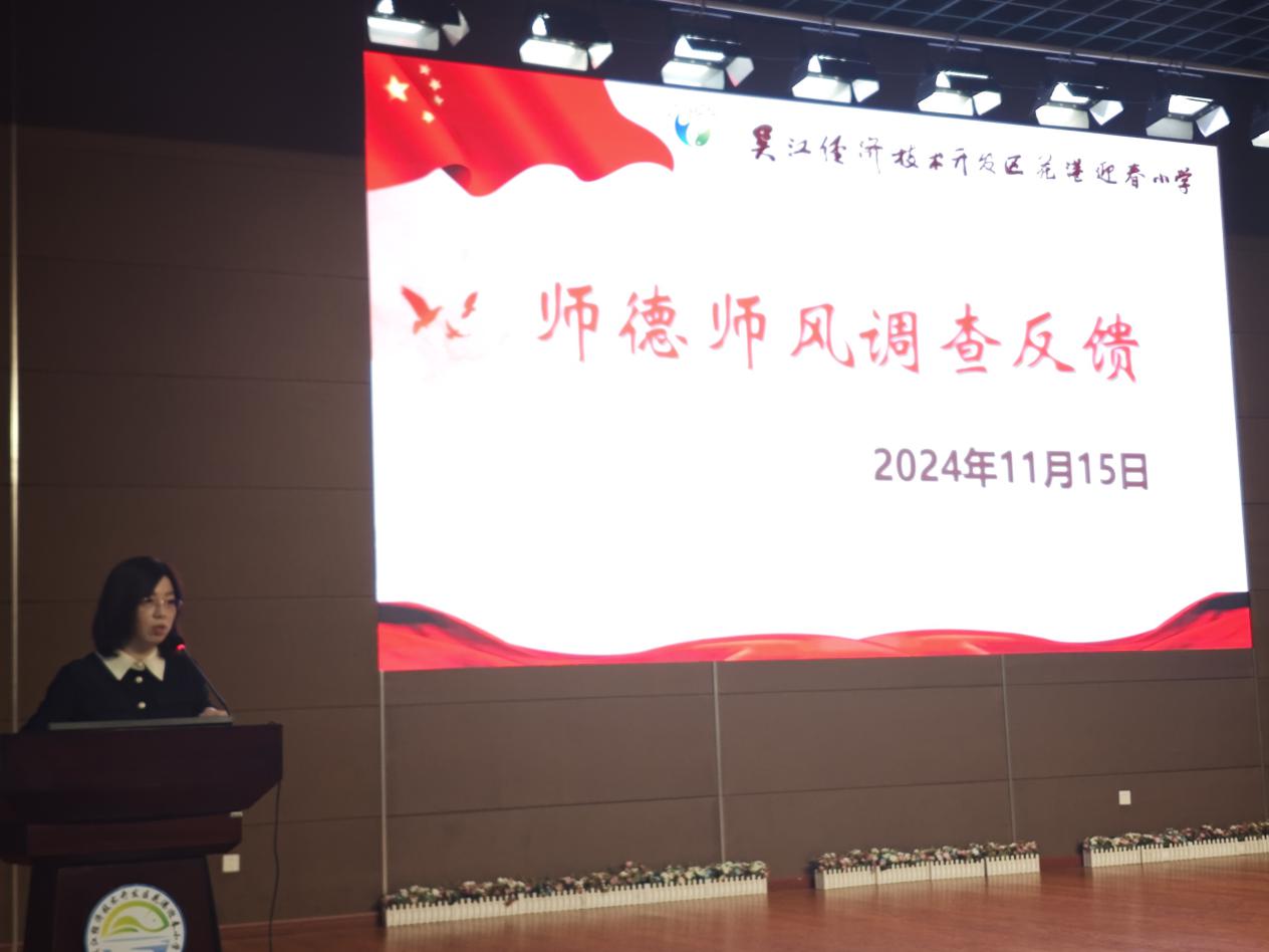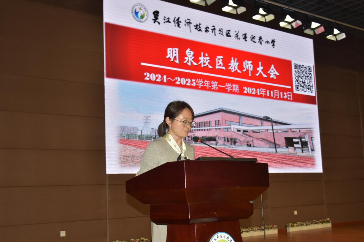 2024年11月15日中午,花港迎春小学明泉校区所有教师集合报告厅,参加了本次全体教师大会,本次会议由副校长胡霞萍主持。