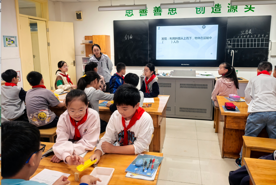 11月15日星期五下午,科微心组全体教师在花港迎春小学迎春校区科学教室1开展教研活动:观摩何雪老师《斜面》的教研课。六年级14班的学生在何老师带领下领略了斜面的奥秘。