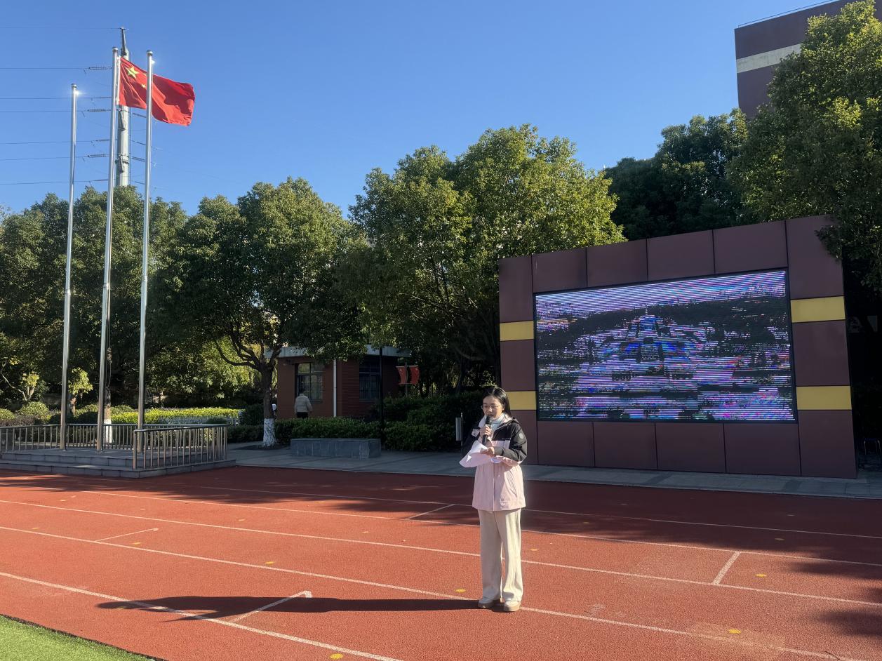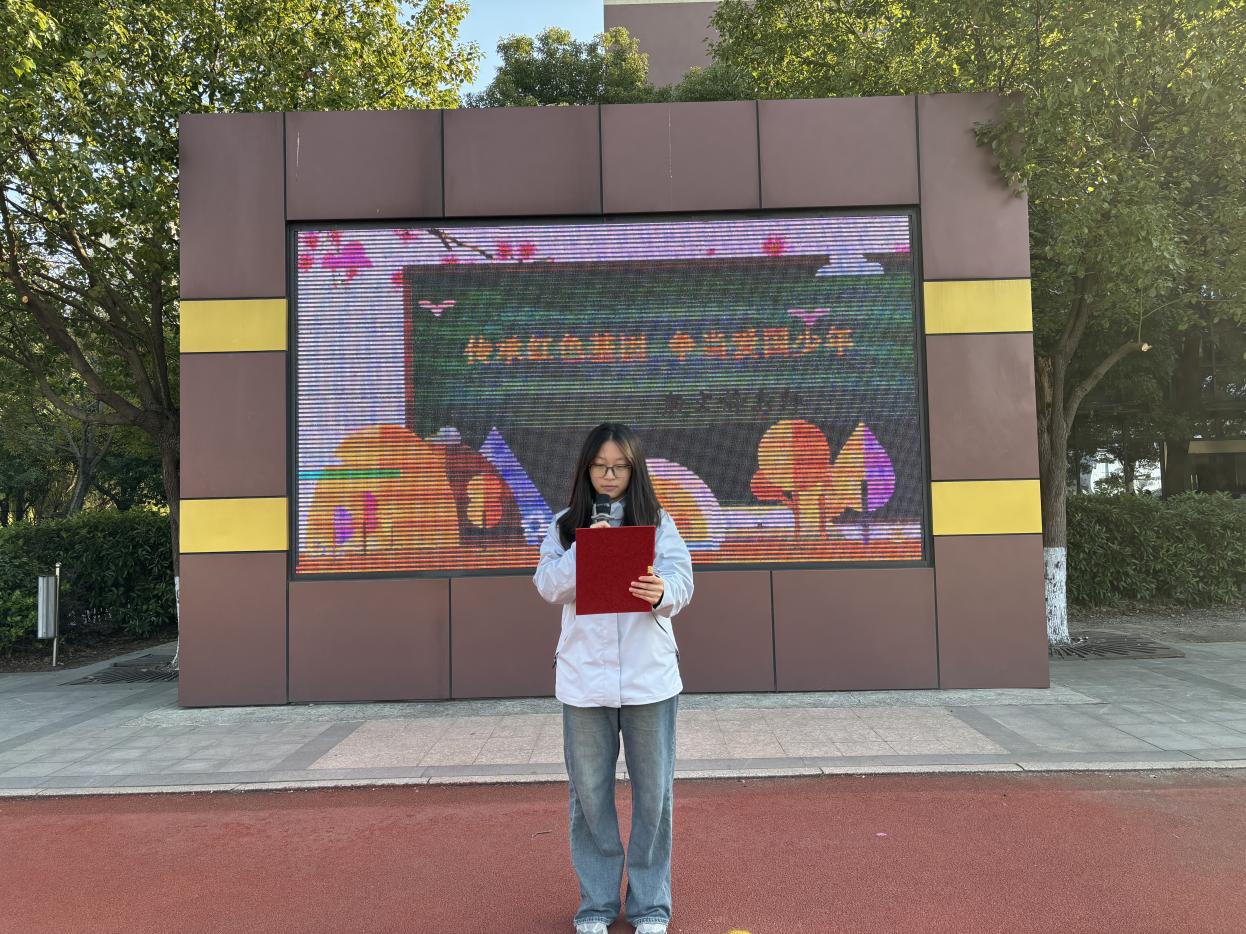 殷文静老师在庄严的国旗下,以“传承红色基因,争当爱国少年”为主题进行了深情演讲,激励全体同学以史为鉴,努力学习,为祖国的繁荣富强贡献自己的一份力量。