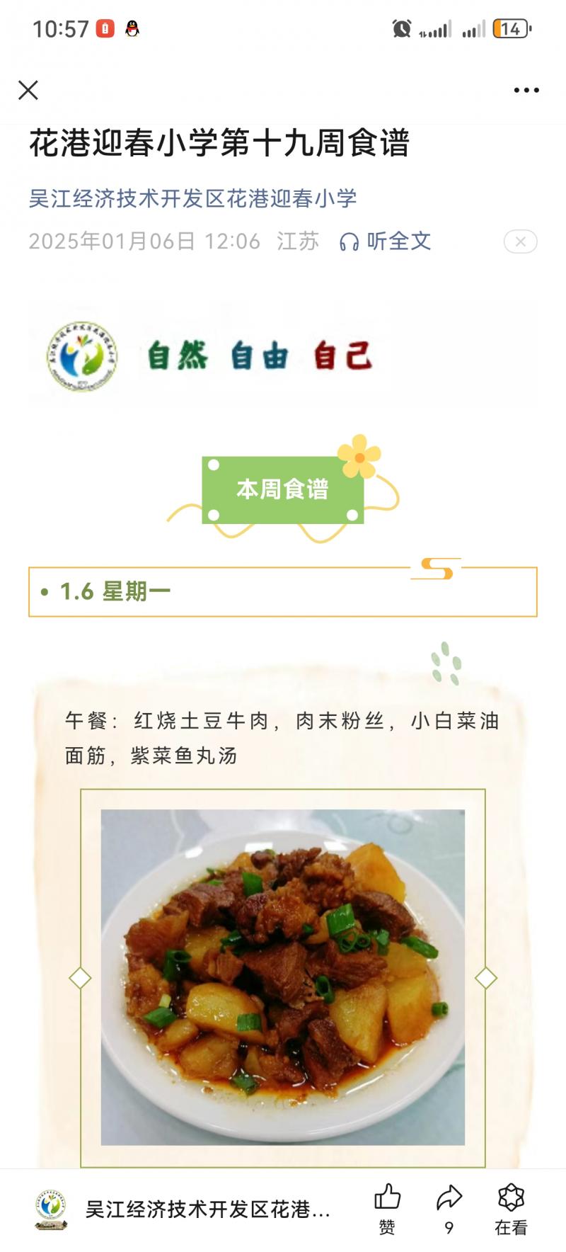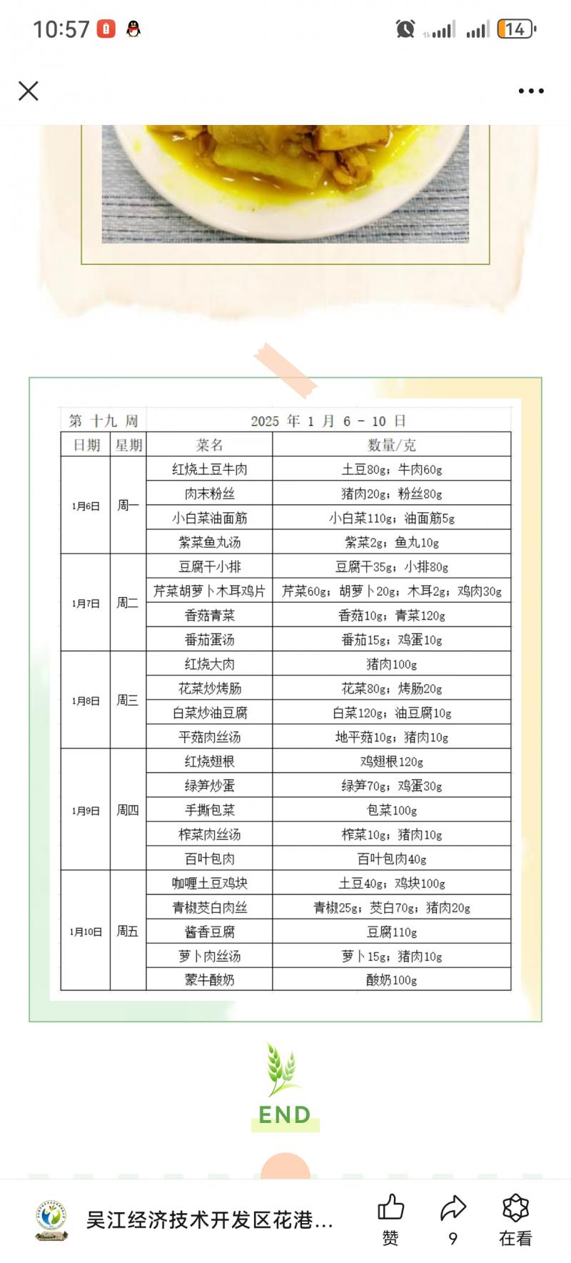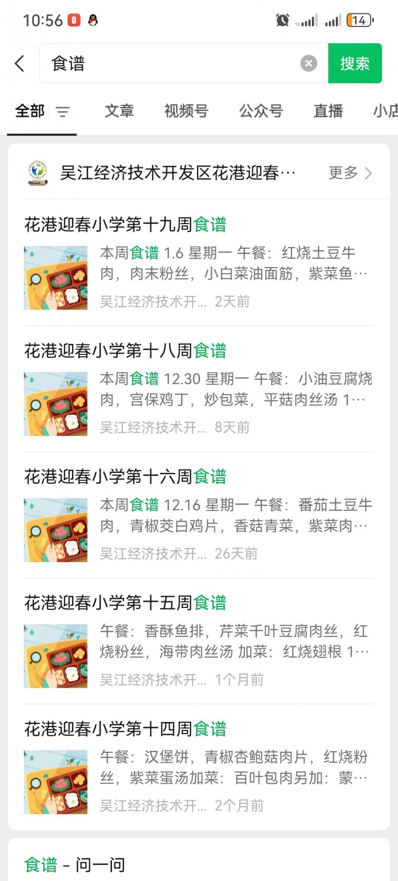 5、每周在食堂醒目位置和微信公众号公示下周食谱,方便学生了解下周菜单。