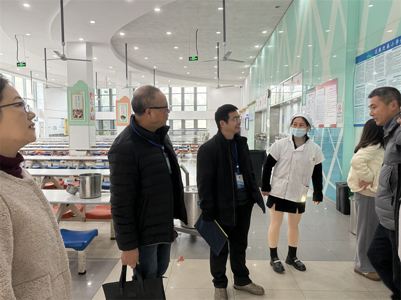 在校领导的陪同下,督学们首先对校园环境进行了全面踏看。他们深入教学楼、操场、专用教室等区域,详细了解学校在教育教学、课程设置、校园文化建设等方面的情况。随后,督学们重点对学校食堂进行了细致检查。他们查看了食堂的卫生状况、食材采购与储存、食品加工流程以及从业人员的健康证等,确保学校食堂管理规范、食品安全有保障。