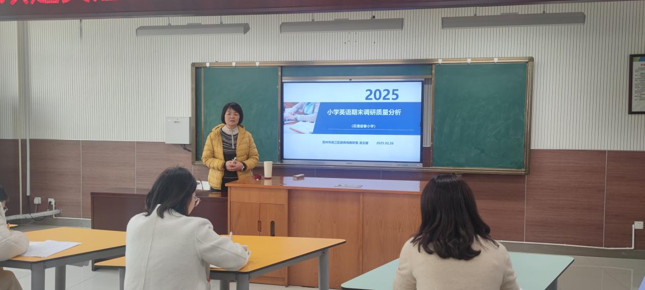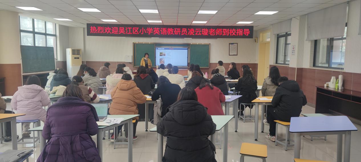 一、2025年2月26日,吴江区小学英语教研员凌老师来到我校对我校新学期英语教学工作进行部署和指导。我校朱校长,钱校长、时校长等参加了会议。全校英语老师齐聚二楼多媒体,认真聆听了会议。首先,凌老师帮助我校分析了四年级和六年级的调研成绩。其次,凌老师就试卷题型进行分析,提出试卷题目要有情景,有思维,有价值,这为我校后续教研组高质量发展做好充分的准备。