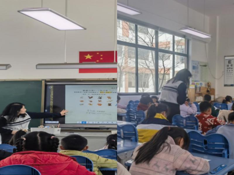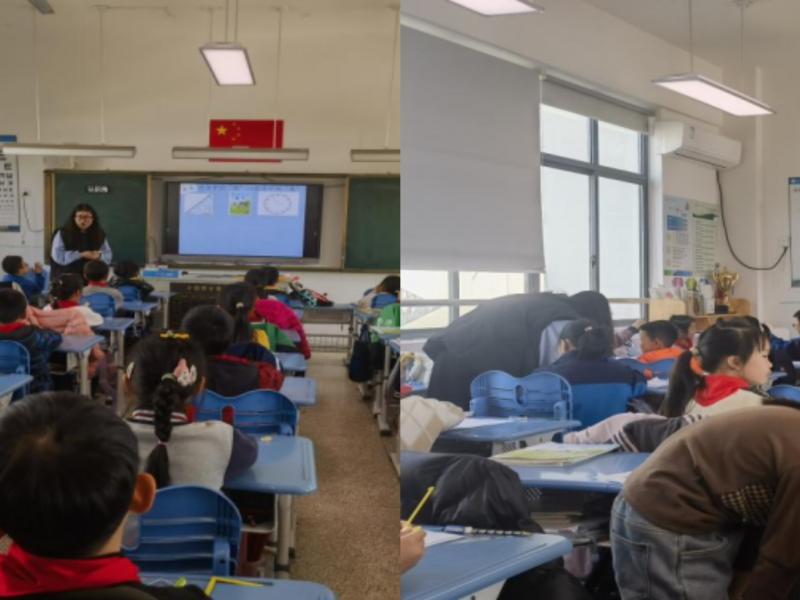 首先,陈怡雯老师展示新课《角的初步认识》:用“三角尺、数学书、钟表”来引入新课,同时结合画一画、看一看等环节具体讲授了“角的概念”。紧接着,结合各种角的表示形式来区分角,环环紧扣,充满趣味性。最后,结合习题和动手操作环节,进一步巩固新知。