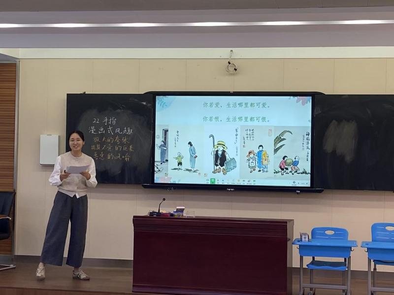 屈雨婷老师重在引导学生体会作品的风趣,在体会内容的趣味性,增强对事物或事件的感悟力的同时,聚焦文本的语言,有意识地感受作品风趣的语言特点。