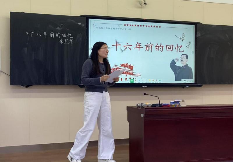 王冬梅老师紧扣回忆录文体的基本特征、关注人物言行、神态和外貌描写,感受李大钊同志坚定信念、勇于牺牲的革命精神。
