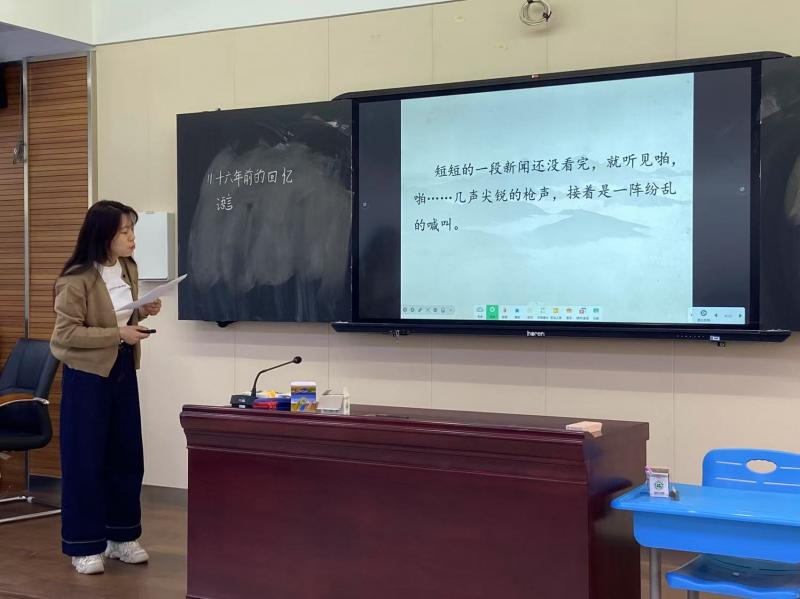 陆纯兰老师以时间线索引导学生梳理事件,从“那年春天”到“4月6日”“十几天后”“4月28日”,使学生快速把握文章结构,清晰了解李大钊从为革命奔忙到被捕、被审、遇害的过程,学习思路明确。