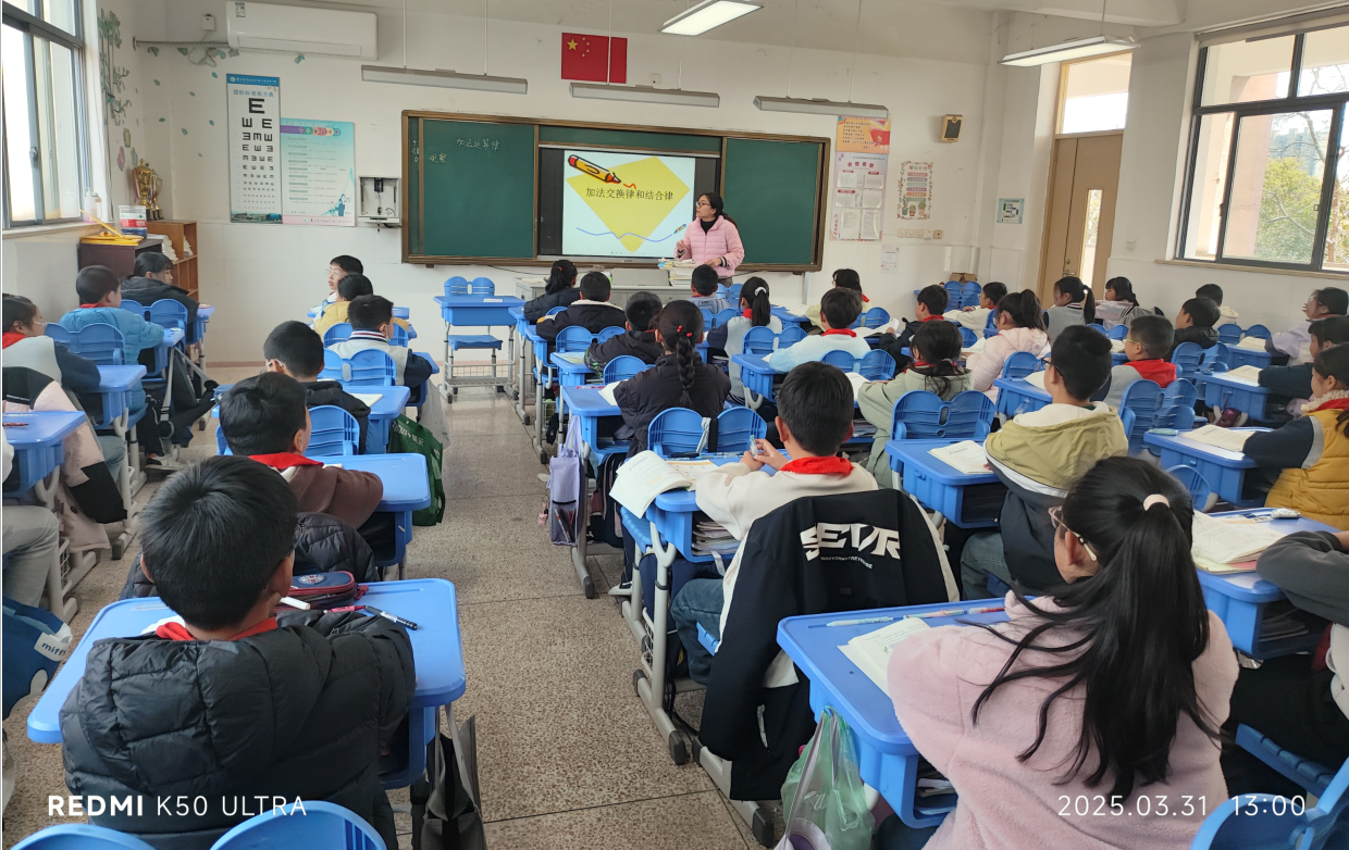 3月31日下午,三四五年级数学组开展了《加法交换律和结合律》教学研讨活动。刘莉老师:《加法交换律和结合律》