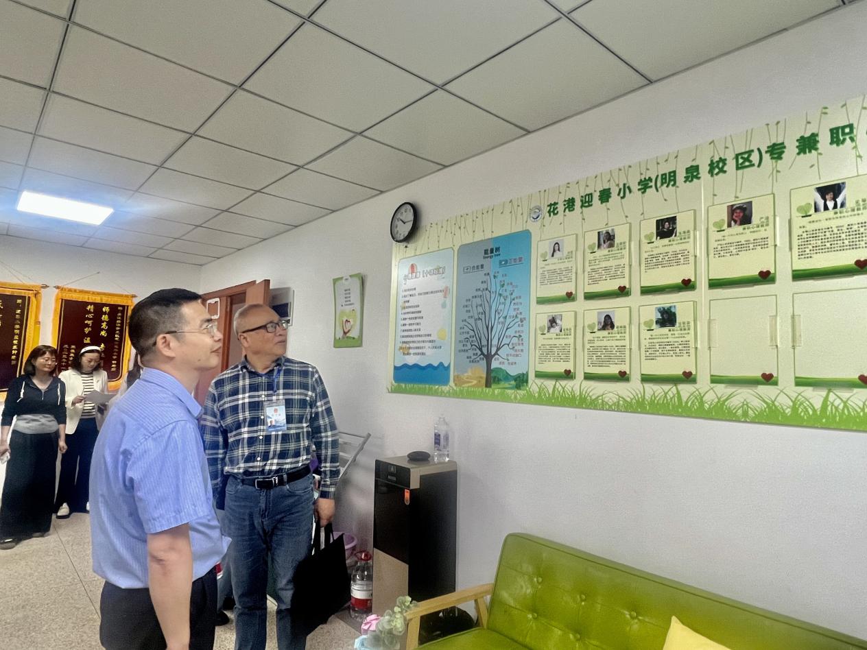 4月22日上午,吴江区小学第九区责任督学陈三林、钱福江莅临我校开展4月挂牌督导工作。本次督导主要内容为检查学校执行规范情况、中小学心理健康教育及师德师风建设等相关工作。校长朱满喜、副校长时娟、副校长钱海燕、副校长胡霞萍全程参与。
