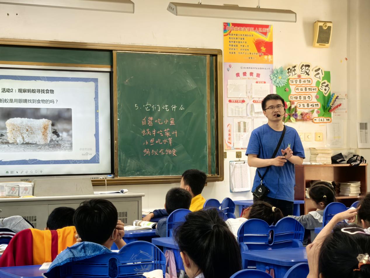 5月30日下午,花港迎春小学迎春校区科学教室1内开展了一年级科学教研活动。科学组全体教师共同观摩了许海峰老师执教的《他们吃什么》研讨课,课后进行了深入的教学研讨。