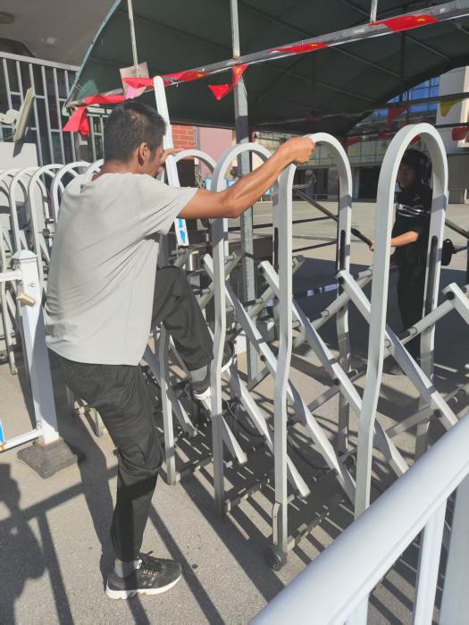 安全重于泰山,生命高于一切,为切实做好校园周边安全防范工作,及时处理暴力袭击事件,进一步提升校园应急处置能力,提高师生及安保人员反恐防暴意识,全力打造安全稳定、和谐有序的校园周边环境,2025年8月30日上午,我校后勤服务中心联合安保人员开展校园防控防暴演练活动。