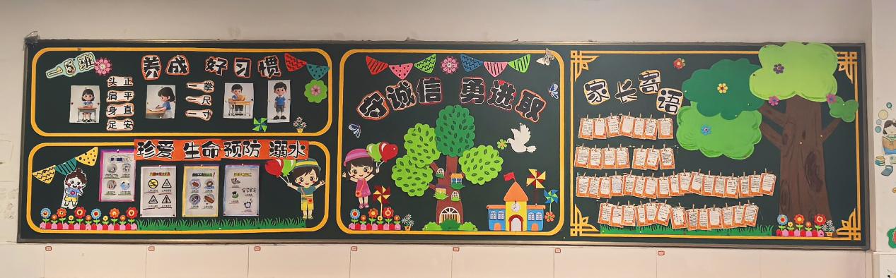 各精心打造的黑板报,成为了校园里一道靓丽的风景线。这些黑板报不仅版面设计美观大方、色彩搭配和谐,更将 “预防溺水,珍爱生命” 这一核心宣传主题融入其中:有的级用生动形象的卡通插图,展现了危险水域的警示场景;有的级则以简洁有力的文字,清晰列出了预防溺水的具体措施与自救方法,让每一位路过的师生都能直观地感受到预防溺水的重要性,在潜移默化中提升安全意识。