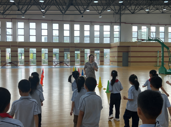 2025年10月16日上午,明泉体育组以基于“自能课堂”理念下的学生体育素养的提升为主题,进行教学研讨活动。赵双蓉老师执教水平一二年级《跑与游戏》。全体体育组老师观摩,积极参与研讨。