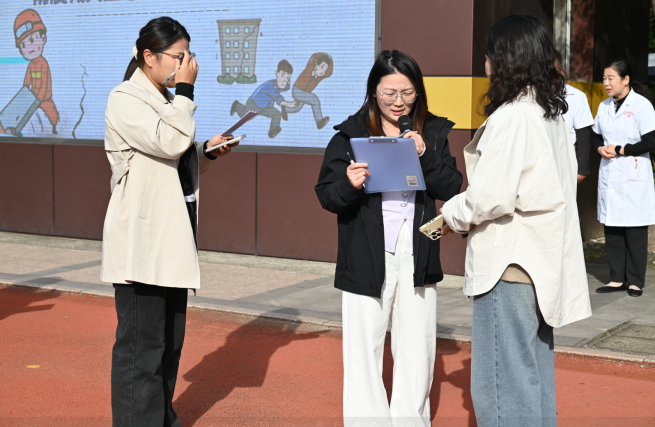 同时,学校对师生身体情况进行问询检查,对发烧、腿受伤等不宜参与紧张奔跑活动的师生,给予特殊安排。校医做好急救准备,确保演练安全。