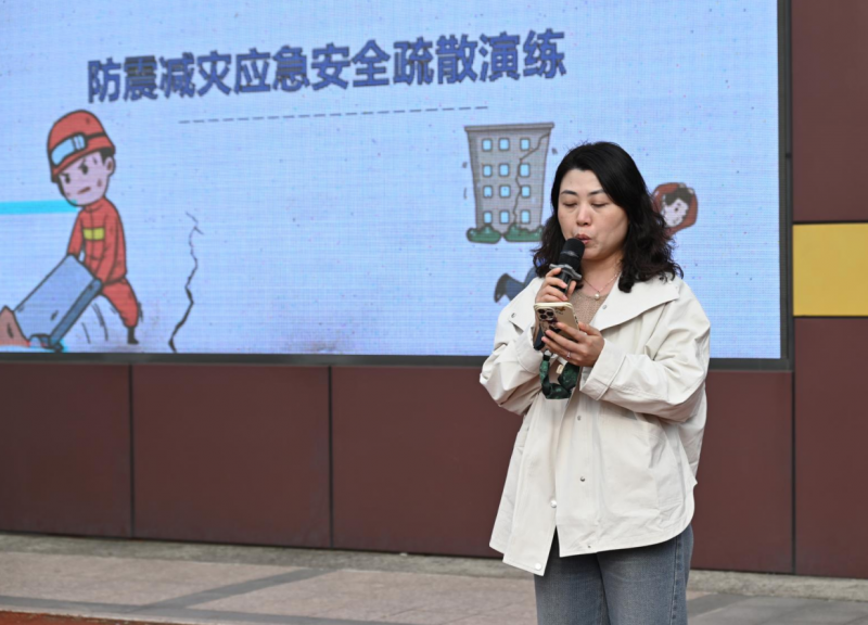 上午晨会课,班主任组织学生学习防震减灾知识,明确演练的必要性、基本步骤和动作要领,强调演练的严肃性。