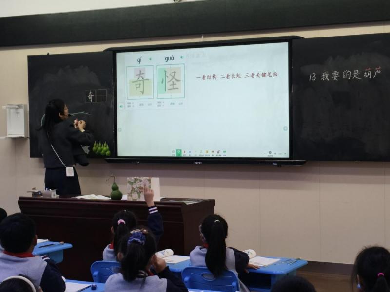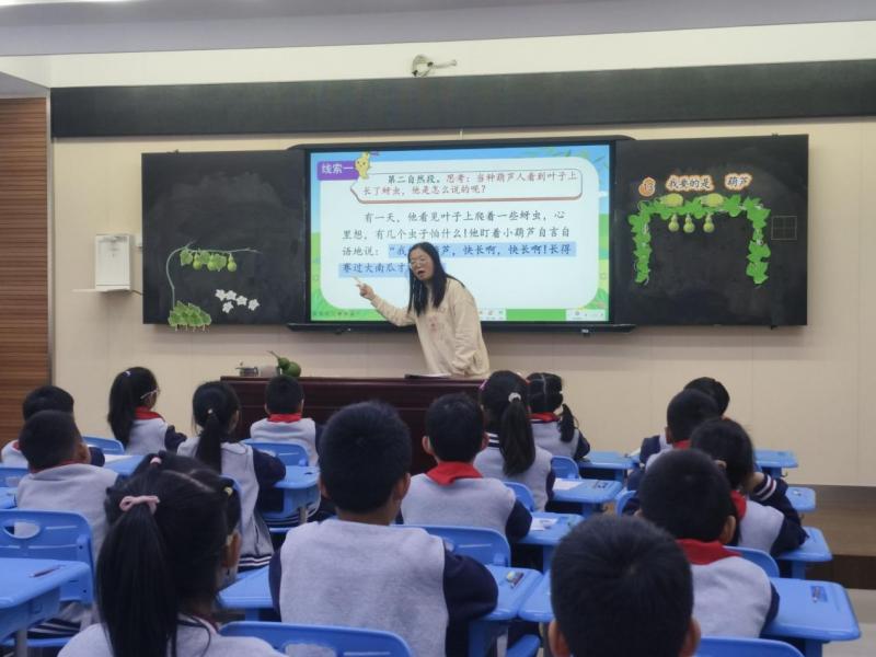 王冬梅老师为我们带来了《我要的是葫芦》第一课,对课题中的“葫芦”进行了识字教学。紧接着她展示实物葫芦,让学生描述一下葫芦的样子,摸一摸,说一说感受。随后王洁老师上了《我要的是葫芦》的第二课时,她创设了“争当小侦探,探寻葫芦发生了什么”的教学情境,充分调动了学生的积极性。