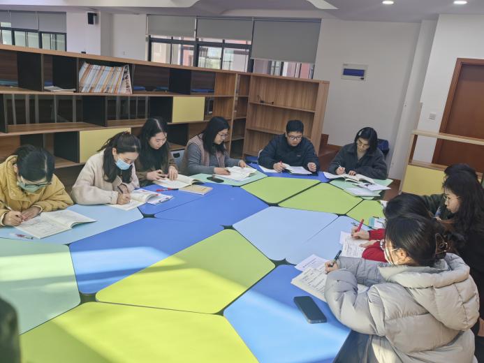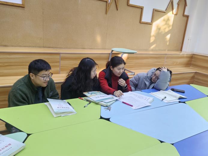 集体研讨结束后,一、二、三年级数学教研组分小组讨论,七认真反馈和期中练习质量分析。