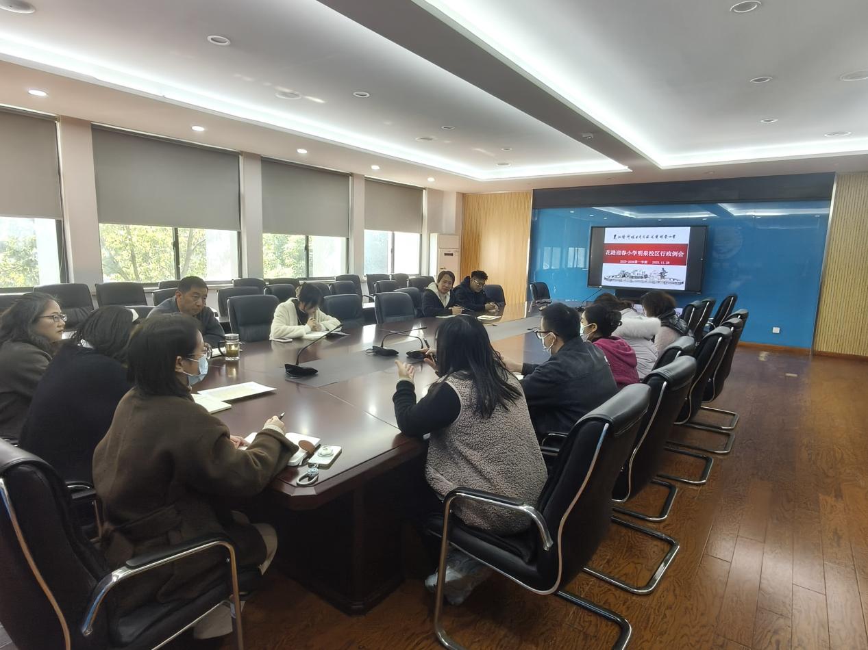 11月28日中午,花港迎春小学明泉校区全体行政人员齐聚二楼会议室,开展本月级部行政会议。此次会议由副校长钱海燕主持,各部门负责人就近期工作重点进行了汇报。