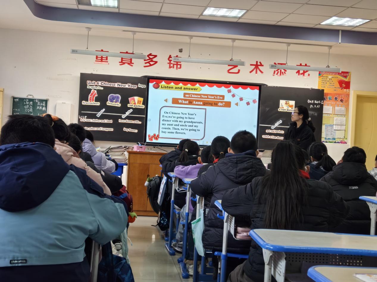 12月17日,我校五、六年级英语组在图书馆开展了本学期第七次教研活动。本次活动由钱科佳老师主持,围绕“守时序进,少教多学”理念,对六年级《Chinese New Year》(story time)一课进行了深入研讨。