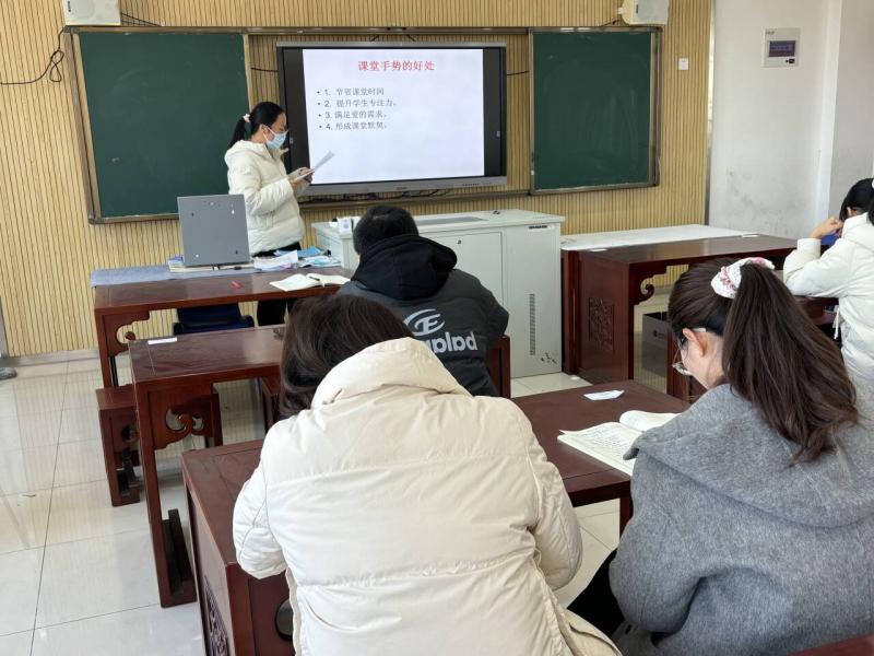 最后侍老师通过课堂手势来进行评课。侍老师认为好的课堂手势是口令和动作的相结合。课堂手势可以帮助老师节省课堂时间,提升学生专注力,形成课堂默契,满足爱的需要。