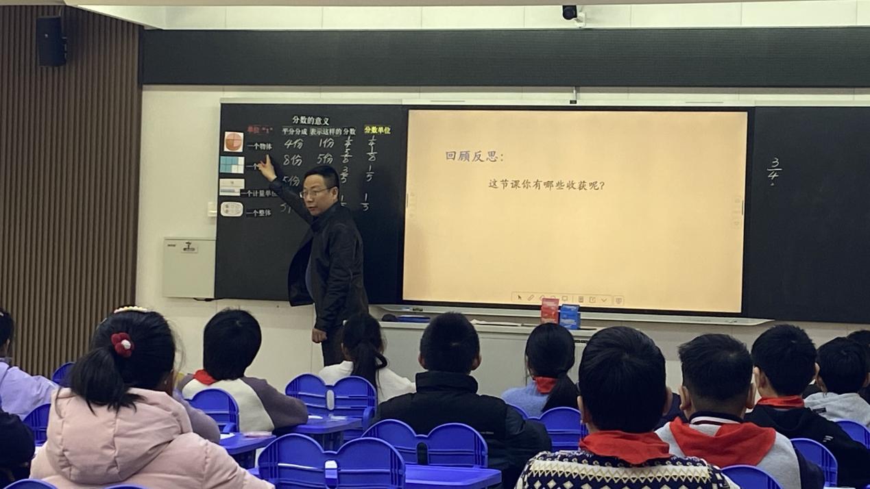 活动伊始,何娟老师带来五年级《分数的意义》示范课。课堂上,她以生活实例为切入点,通过分物操作、图示对比、小组讨论等多样化教学方式,将抽象的数学概念具象化,引导学生层层深入理解分数的本质内涵,充分展现了扎实的教学功底与灵动的课堂设计。
